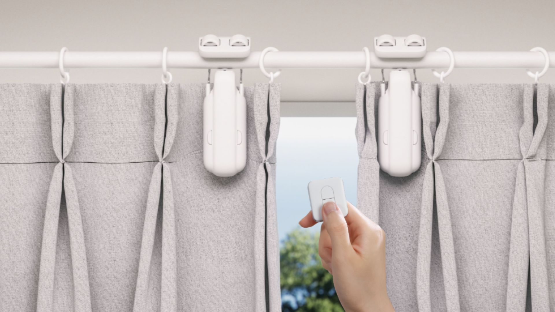 SwitchBot Curtain öffnet Vorhänge automatisch per Fernbedienung an Gardinenstange im Smart Home.