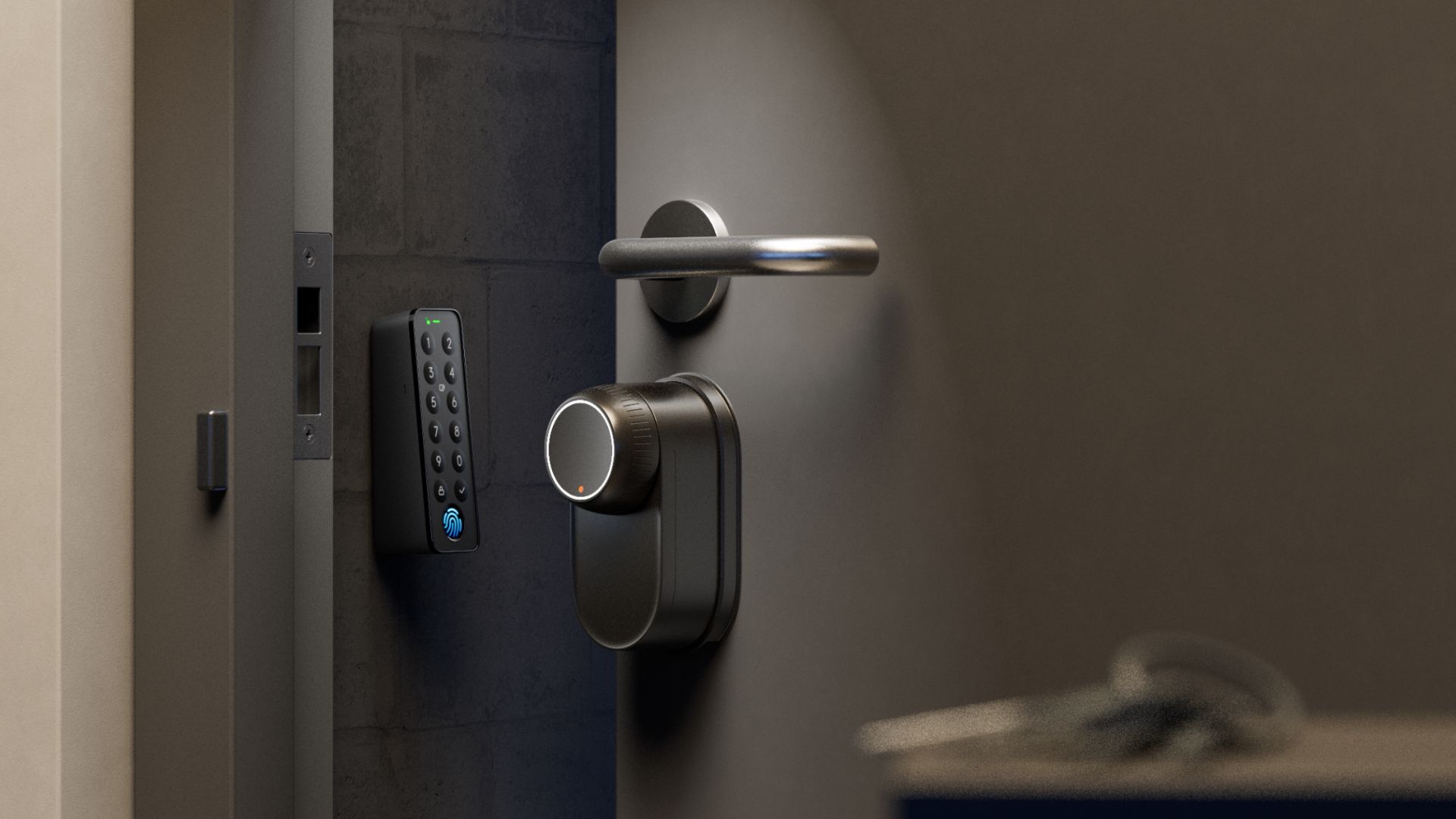 Die Entriegelung soll kontaktlos in unter einer Sekunde erfolgen, die angegebene Fehlerrate liegt bei unter 0,0001 Prozent. Zum Paket gehören neben dem eigentlichen Schloss ein Keypad mit Kameraeinheit sowie ein Hub Mini mit Matter-Unterstützung.