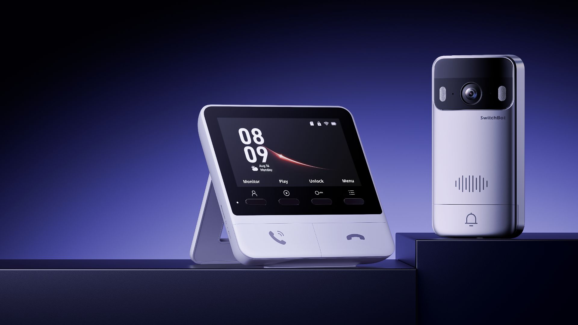 SwitchBot Smart Video Doorbell mit Innenmonitor und Kamera für smarte Haustürüberwachung.