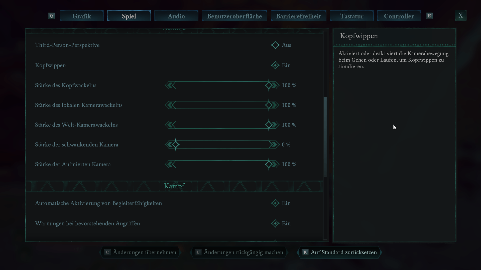 Kampf-Einstellungen in Avowed