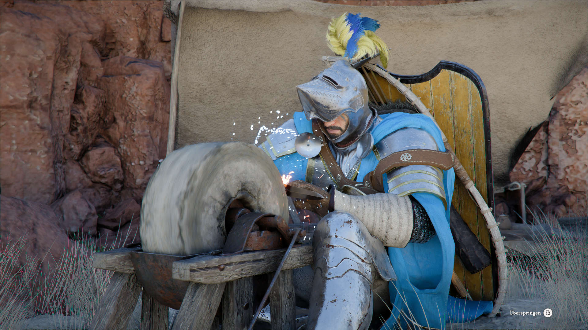 Achtet aber auf jeden Fall darauf, dass ihr das Schwert vor dem Kampf noch einmal schärft, um einen Bonus auf den Angriffswert zu erhalten. Vor dem Bosskampf erreicht ihr noch kurz einen Wetzstein (Grindstone) am linken Rand des Schilffeldes.