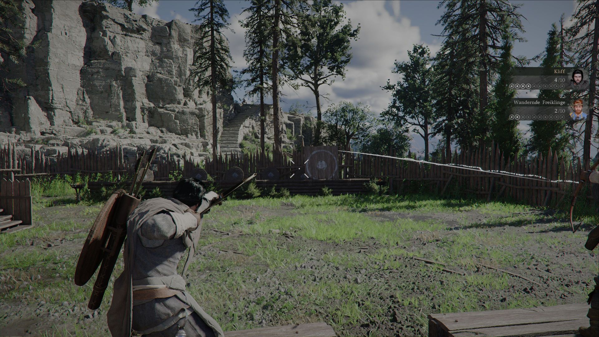 Die wahrscheinlich lohnendste Aktivität in den ersten Spielstunden ist aber der Bogenschießwettbewerb (Archery Contest). Dabei müsst ihr schneller als euer Gegner zehn zufällig auftauchende Zielscheiben treffen, was tatsächlich sehr einfach ist. Pro Runde gewinnt ihr 80 Geld und ihr könnt so oft antreten, wie ihr wollt. Ihr findet den Wettbewerb am Löwenmähne-Anwesen (Lioncrest-Manor) von Haus Alfonso nordwestlich von Hernand-Stadt.