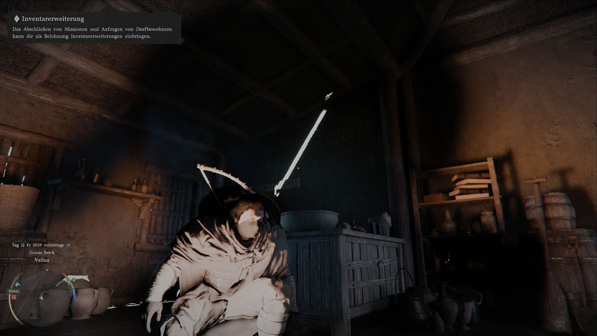 In Crimson Desert liegt nützlicher Krempel an jeder Ecke herum. Und da die meisten Häuser frei zugänglich sind, ist es gerade zu Beginn äußerst verlockend, der eigenen kriminellen Energie freien Lauf zu lassen und alles einzupacken, was nicht niet- und nagelfest ist.