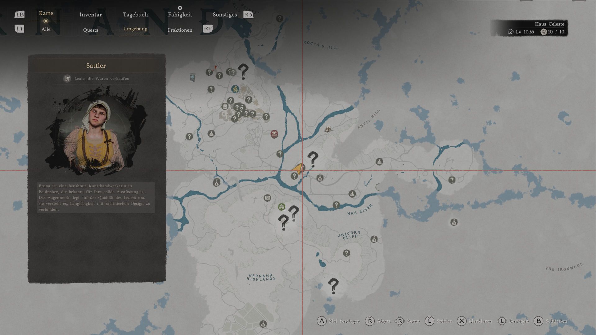 Sobald ihr etwas Kleingeld habt, stattet Sattlerin Annabella in Hernand-Stadt, oder dem Sattler Equinsher (Equinsher Saddlery) in den Serkis-Ländereien einen Besuch ab. Sein Geschäft liegt südöstlich außerhalb von Hernand-Stadt. Warum fragt ihr euch? Weil ihr dort wichtige Gegenstände für euer Reittier bekommt. Pferde können nämlich verletzt werden oder Ausdauer verlieren.