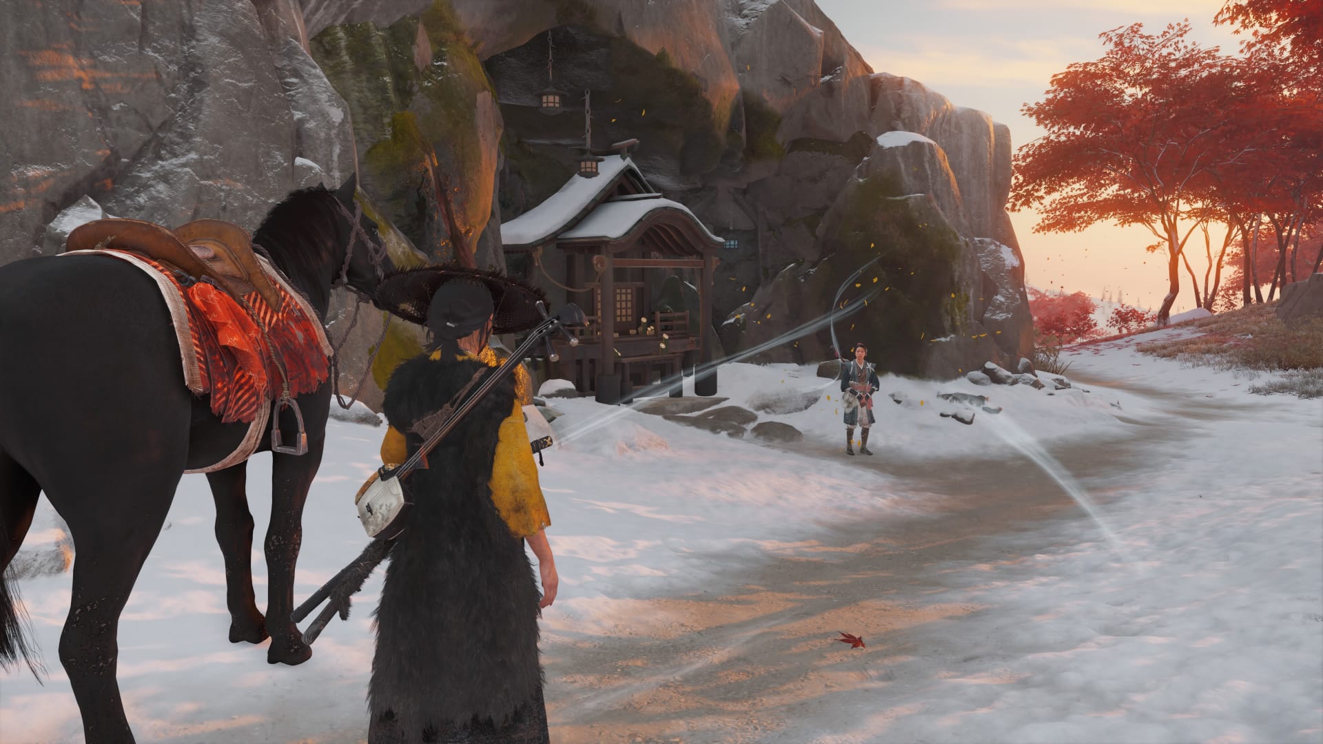 In der offenen Spielwelt werdet ihr immer wieder auf Glühwürmchen oder Singvögel treffen. Beide sind relativ hartnäckig und wollen euch durch ihre Anwesenheit etwas mitteilen. Auch wenn ihr euch gerade mitten in einer Mission befindet, solltet ihr den kleinen Wesen folgen. Sie führen euch zu versteckten Schätzen oder Ainu-Gegenständen, die ihr sammeln könnt. Goldene Vögel führen euch hingegen zusätzlich zu Shamisen-Liedern und Orten für Sumi-e-Gemälde.