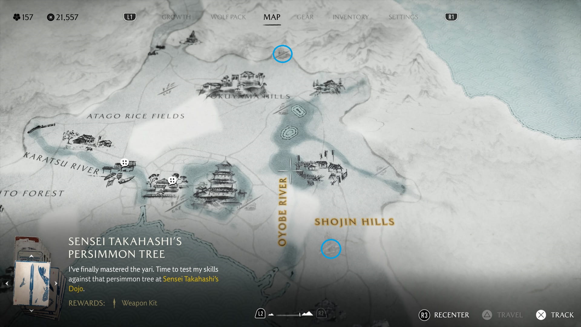 Karte von Ghost of Yotei mit eingezeichneter heißer Quelle.