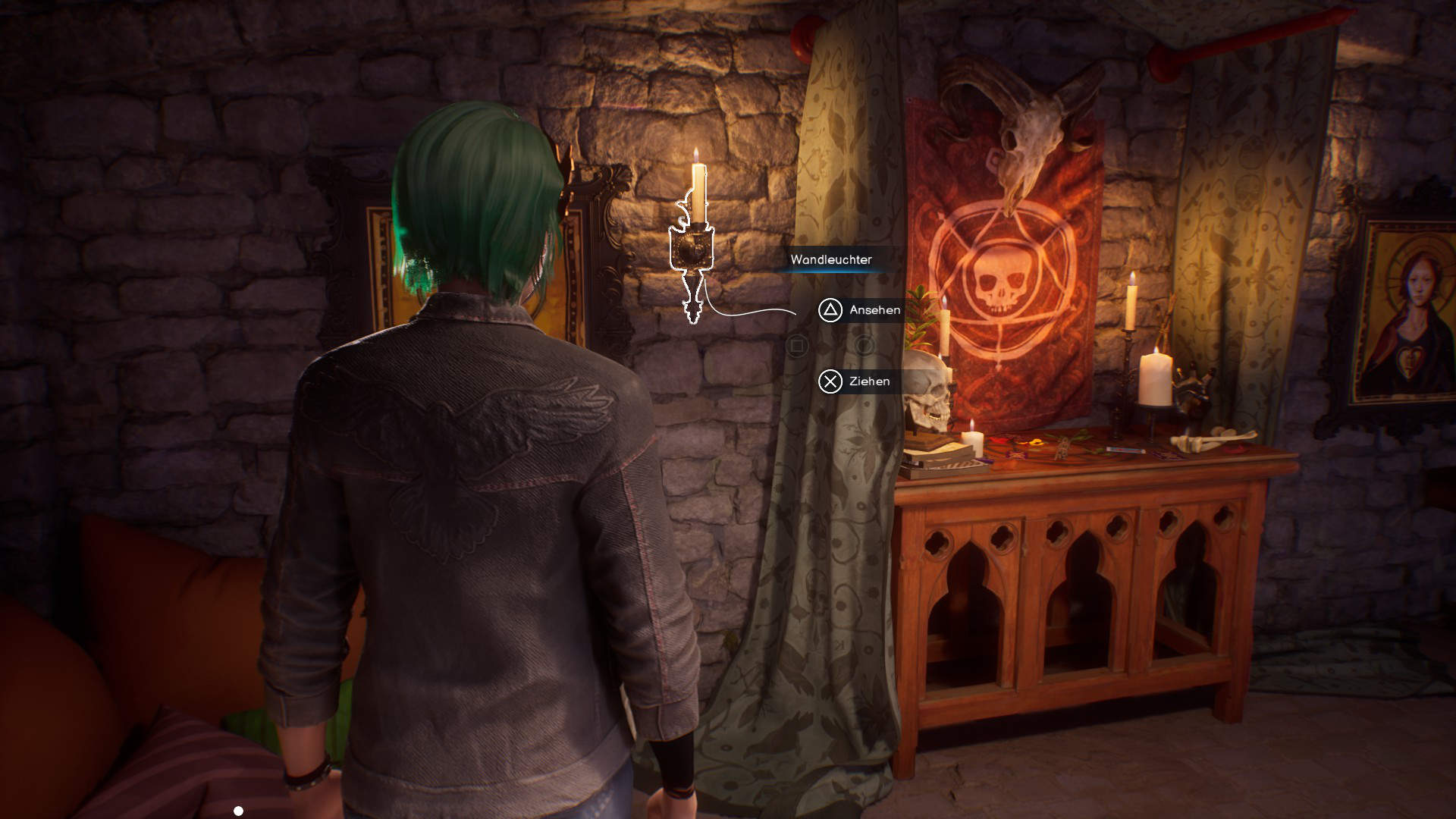 Nach dem Zwischenfall könnt ihr den Geheimraum erneut betreten. Untersucht das beschädigte Mauerwerk, um weitere Details wahrzunehmen.