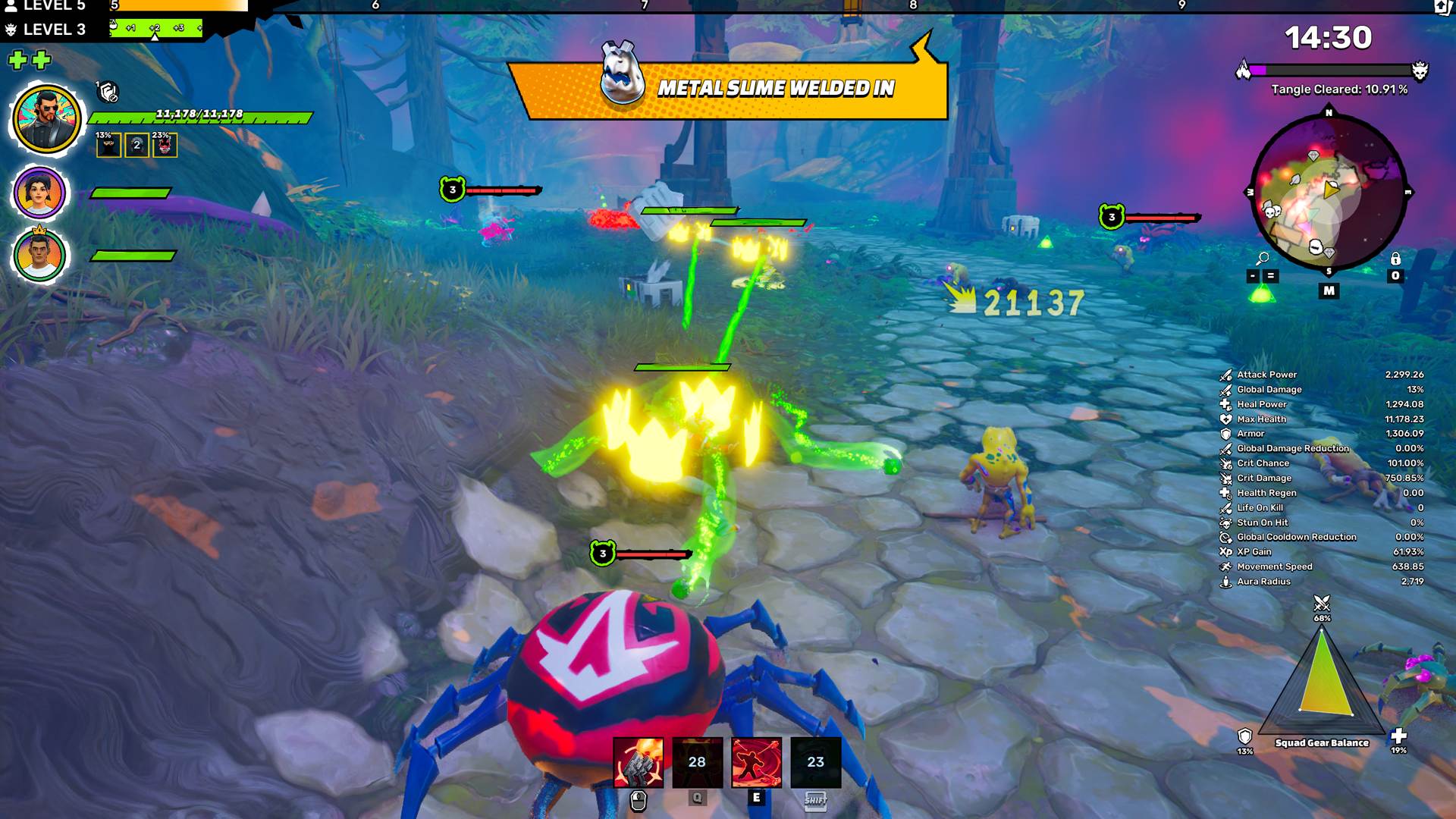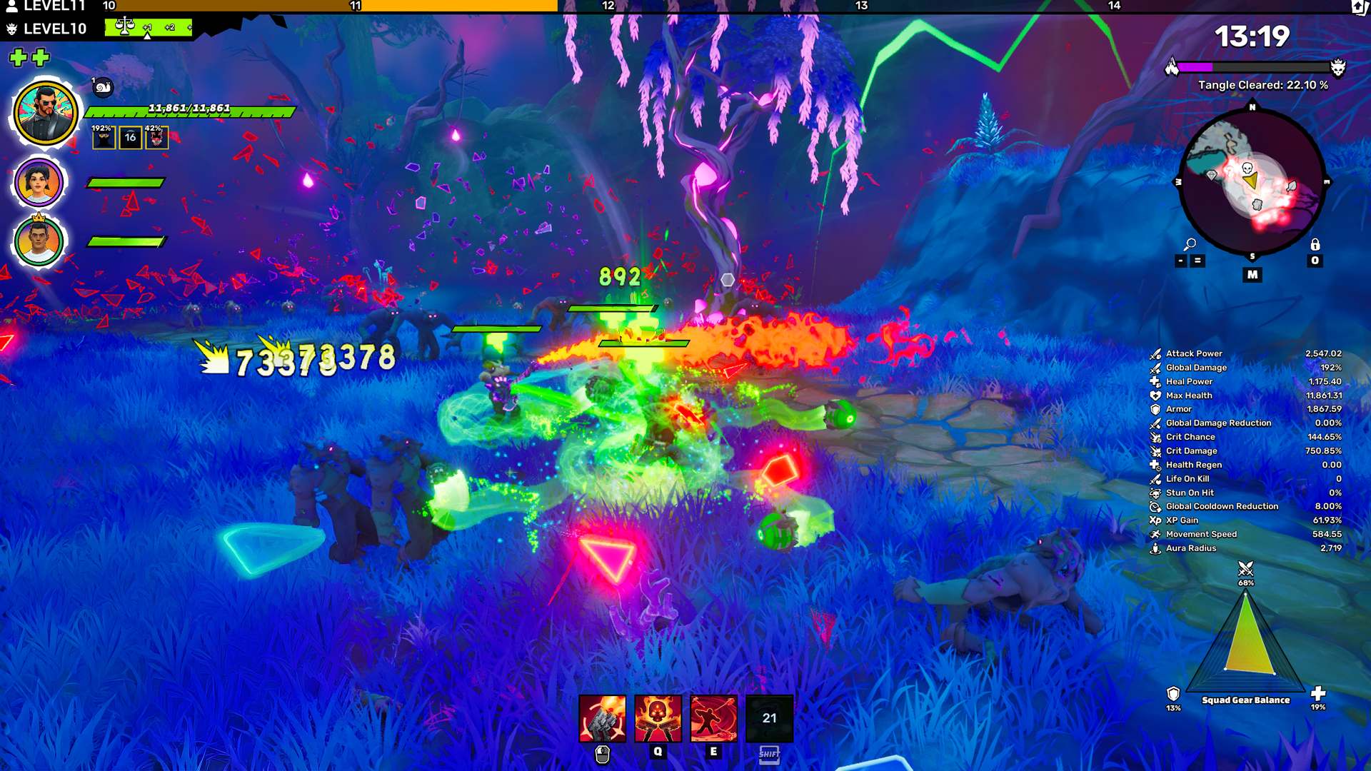 Out of Time ist ein Multiplayer‑Roguelite, das versucht, Chaos, Teamplay und schnelle Runs in ein gemeinsames Erlebnis zu verwandeln. Die große Besonderheit ist das „Tether‑System“: Euer Team ist durch eine Art Energieband verbunden. Bleibt ihr zusammen, teilt ihr euch alle Stats. Seid ihr beispielsweise zu viert und jeder bringt 1000 Leben mit, kommt ihr auf einen gemeinsamen Lebensbalken von satten 4000 Punkten. Das System bezieht sich auf alle Werte.