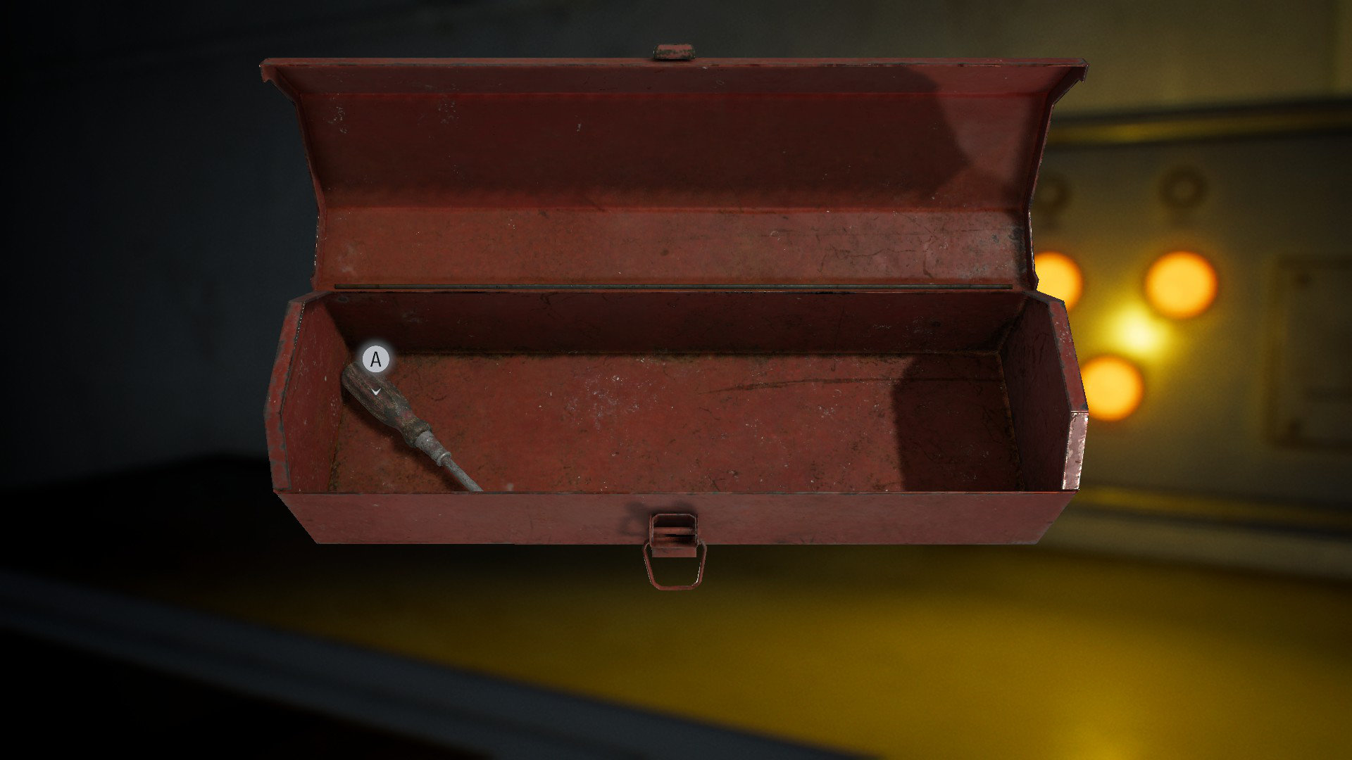 Der Schraubenzieher liegt oben auf einem Schrank in einem roten Werkzeugkasten. Um ihn zu erreichen, müsst ihr einen Schiebewagen zum Schrank ziehen. Das Problem: Das Verschieben verursacht Lärm und lockt das Schattenwesen an.